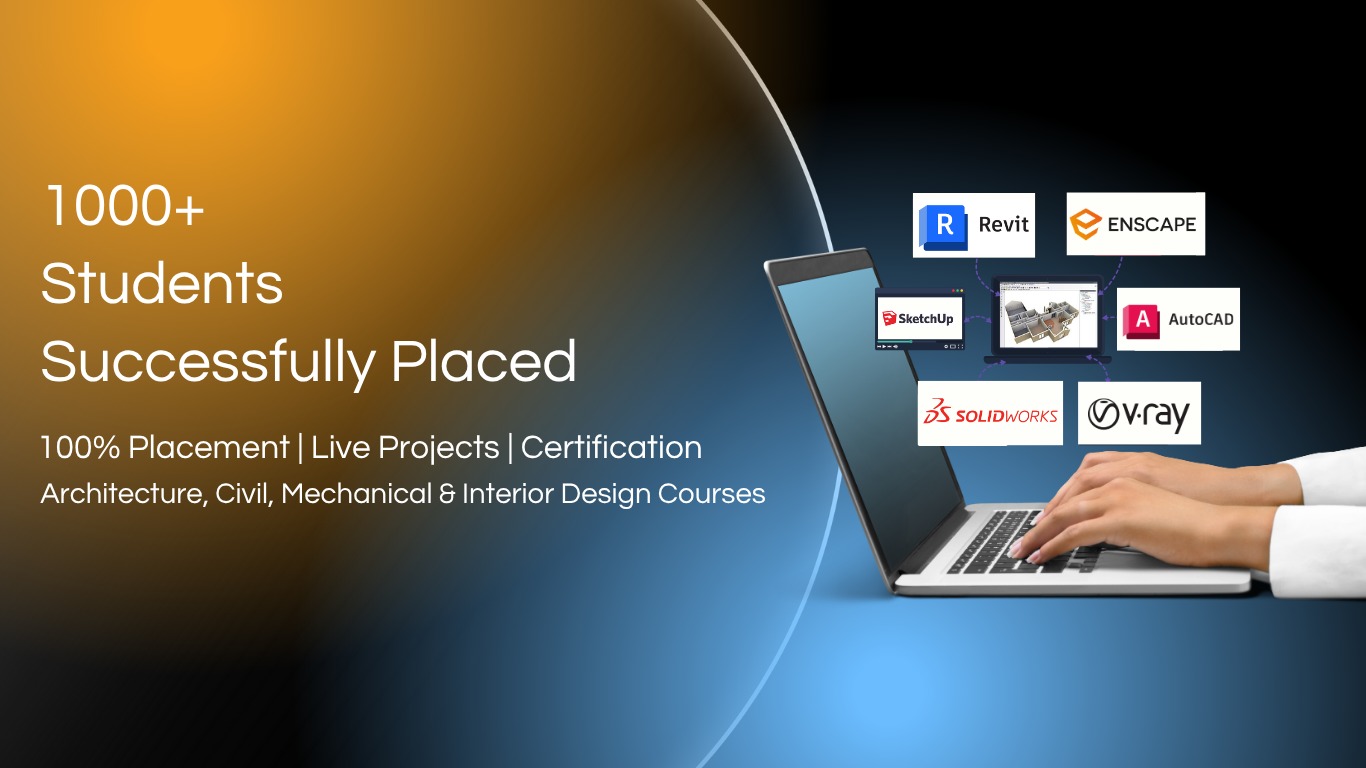 As the most reputed CAD Center in Ahmedabad, we specialize in teaching globally recognized CAD software such as AutoCAD, Revit, SketchUp, SolidWorks, V-Ray, Enscape, and more. Our certified trainers ensure practical knowledge, real-world project experience, and 100% placement Guarantee in top design and engineering companies.